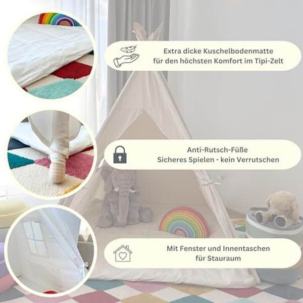 L’ALRITHO Tipi Tente pour enfants se positionne comme un choix attrayant pour créer un espace de jeu confortable et sécuritaire. Fabriqué en coton pur et équipé d’un tapis de sol antidérapant, ce tipi démontre une finition soignée et une robustesse à toute épreuve. Un produit qui semble avoir gagné sa place dans le cœur des parents grâce à sa qualité et sa fiabilité.